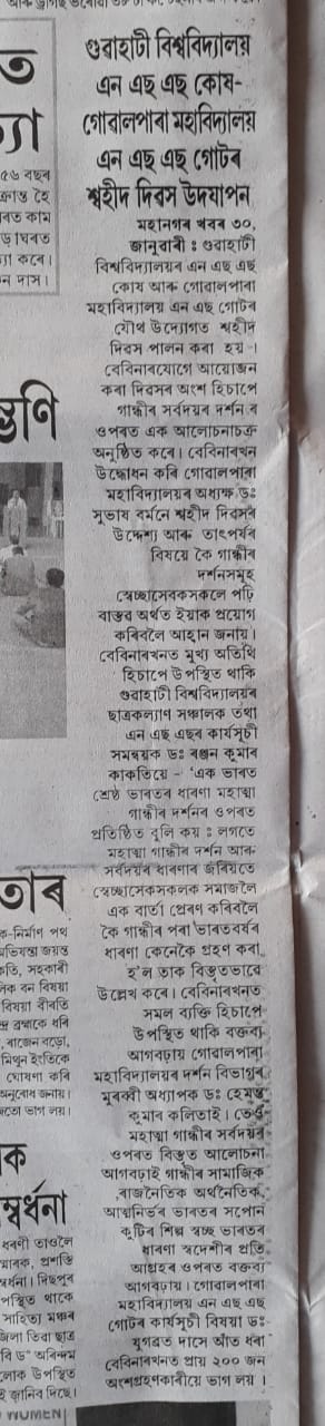 Title: গুৱাহাটী বিশ্ববিদ্যালয় এন এছ এছ কোষ- গোৱালপাৰা মহাবিদ্যালয় এন এছ এছ গোটৰ শ্বহীদ দিৱস উদযাপন