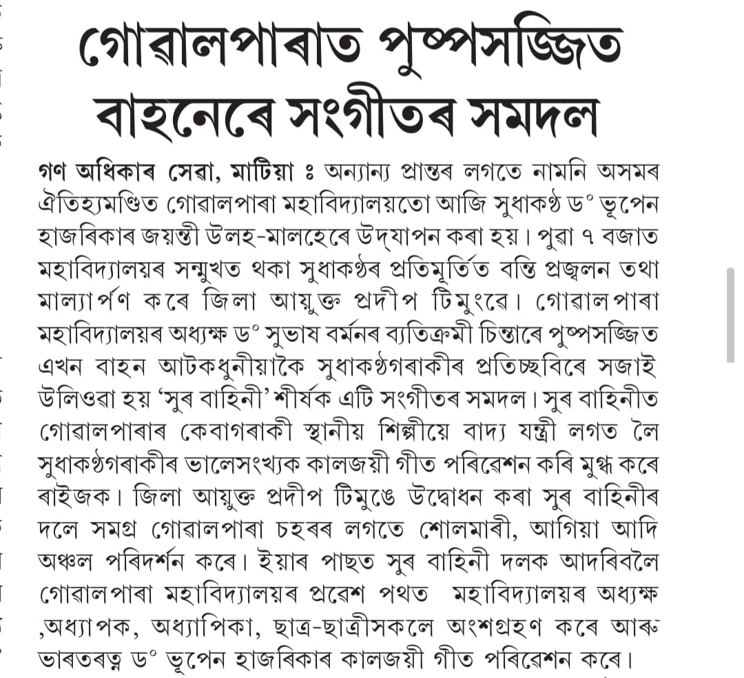 http://localhost:80/xmlui/handle/123456789/3161| Title: | গোৱালপাৰাত পুষ্পসজিজত বাহনৰে সঙ্গীতৰ সমদল |